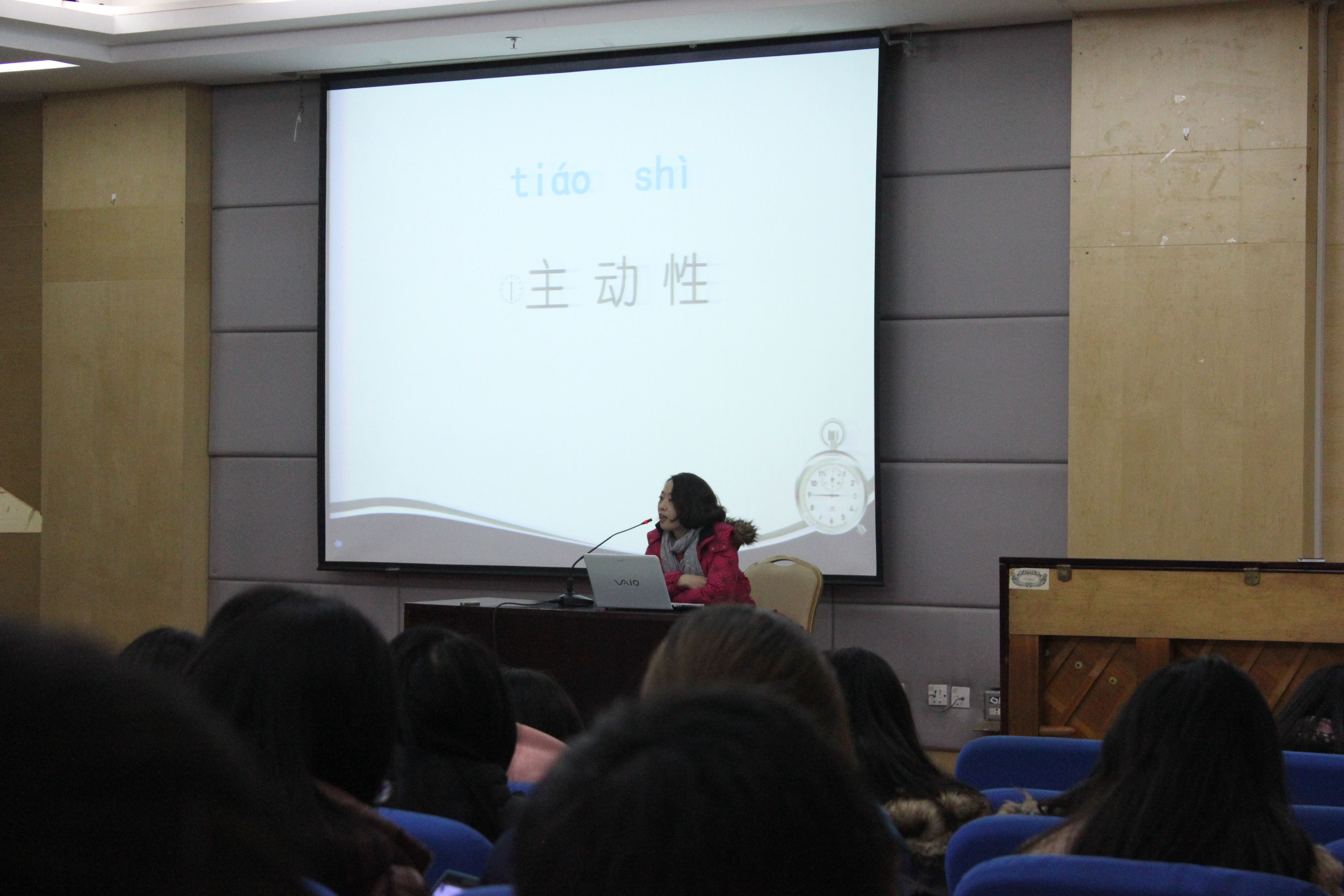 首先,她用自己曾经在各个时间段拥有的录音机来反映科技带来的改变,从一台旧式收音机到Walkman,从Walkman到小巧的小米;从旧式“大肚子”电脑到灵秀的平板。这些改变表现地不止是科技的进步,还有人们生活方式的变化。谷老师道:“学生们也是有了很大的变化,现在的不少学生们天天在网络虚拟空间里遨游,而忘了做自己本来的事……”当老师谈到教育领域时,她说现在很多同学们的学习状态是病态的,不正常的,只是为了应付考试而学习,便失去了学习的意义。“新媒体技术的应用,使人们的生活发生了翻天覆地的变化,但千万不要迷失了本真的自己”谷羽老师谈到新媒体下的人际关系语重心长道:“朋友不是朋友圈,空间里的留言点赞。真正的好的关系需要在日常生活中点滴小事做起。”