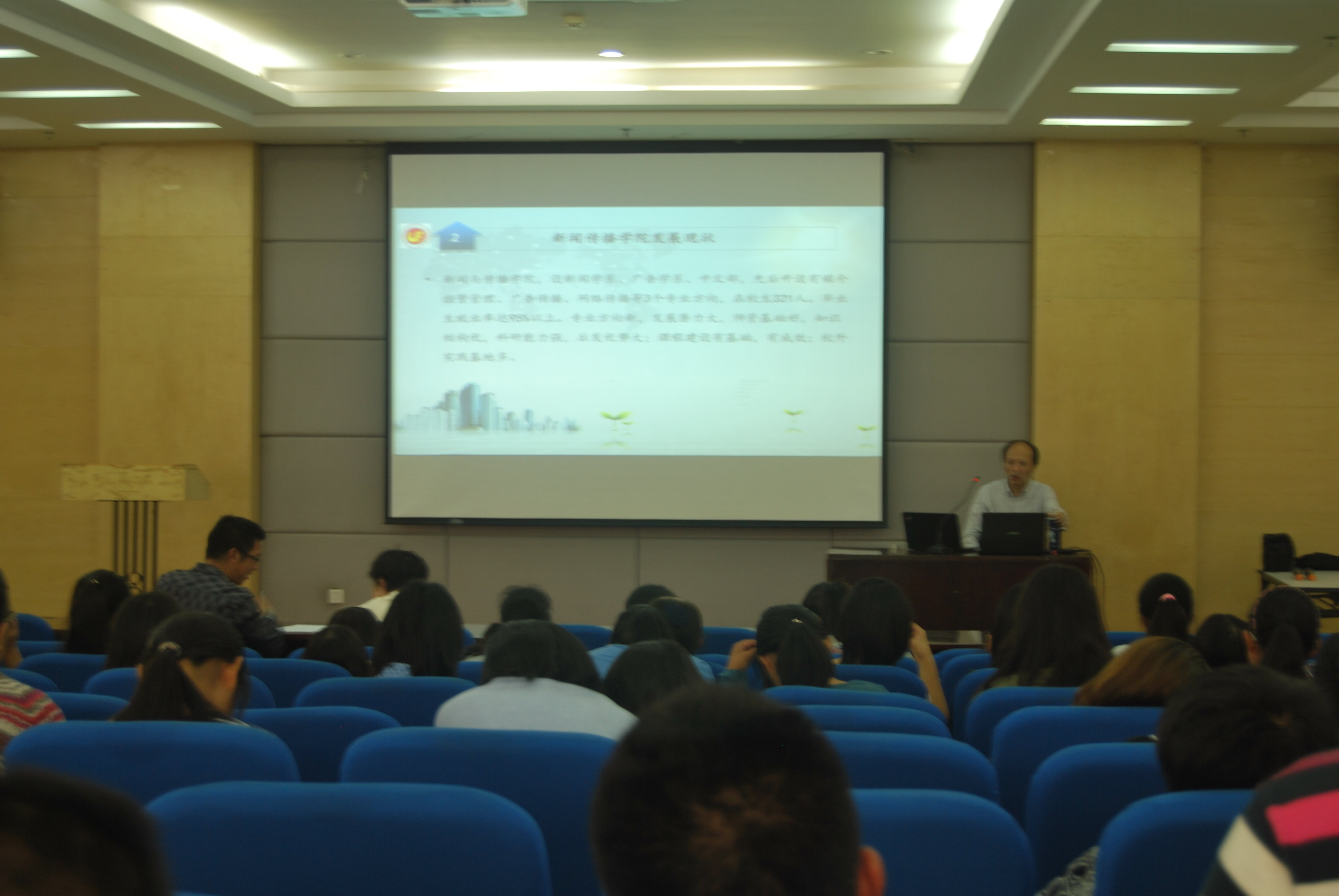 讲座第一部分,王远坤院长对大一新生对新闻专业的不理解以及对就业方向的迷茫,做了针对性阐述。他说,“专业没有好坏之分,只要你爱它,努力去学它,就能成功”,并强调新生不要只把眼睛盯着热门专业,风水轮流转,今日的王牌可能在你毕业时变得不再王牌,你今日不能理解的新闻专业就是将来建设文化强国的王牌!接着,他用PPT的形式将改革开放以来新闻专业的发展情况(发展速度,就业率等)展示出来,一张张分析图表让同学们对本专业多了一分理解。之后,他列举了一些开设新闻专业的名校,并将我校与其相论,并指出我校学子在校外交谈时要能够大声喊出“我是tyc33455cc太阳成集团的!”意在树立新生的自信心及自豪感,从而进一步激发新生学习新闻专业的热情。最后,王院长就专业现状对就业前景做了相关评估