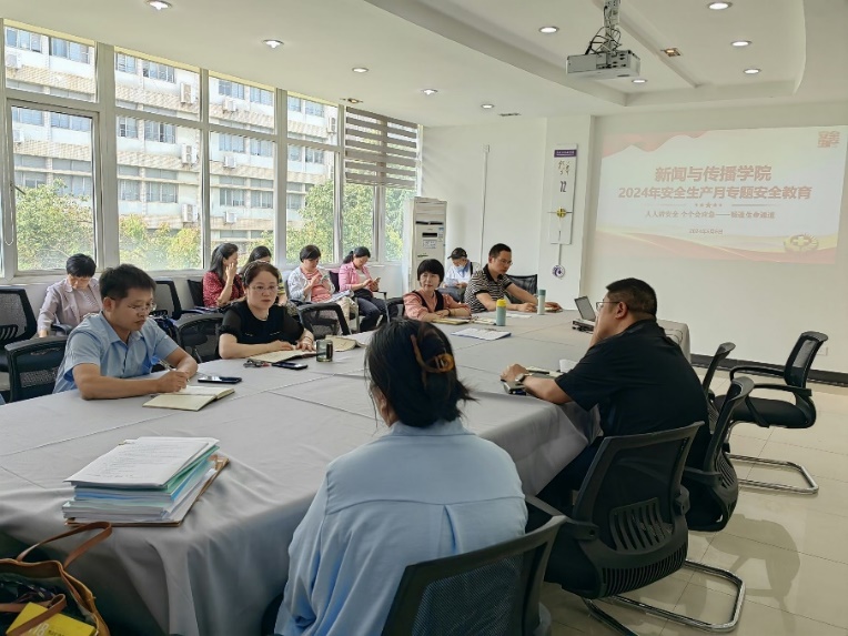 为深入学习贯彻习近平总书记关于安全生产、应急管理重要论述和重要指示批示精神,牢牢把握全国、全社会广泛开展安全生产宣传教育活动契机,推动安全理念、安全文化、安全法律和安全知识进校园,切实促进全院师生安全意识和防范能力强化提升,共同营造安全、稳定、和谐的办学育人环境,全力保障师生安全、维护校园安全稳定,根据《tyc33455cc太阳成集团开展 2024年“安全生产月”活动的实施方案》部署要求,2024年6月6日下午,太阳集团tyc33455围绕“人人讲安全、个个会应急——畅通生命通道”主题开展2024年安全生产月宣传教育活动。院党委书记周志荣主持,全院教职工参加。