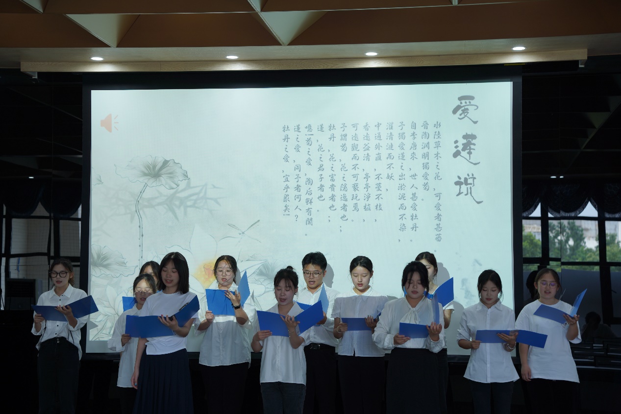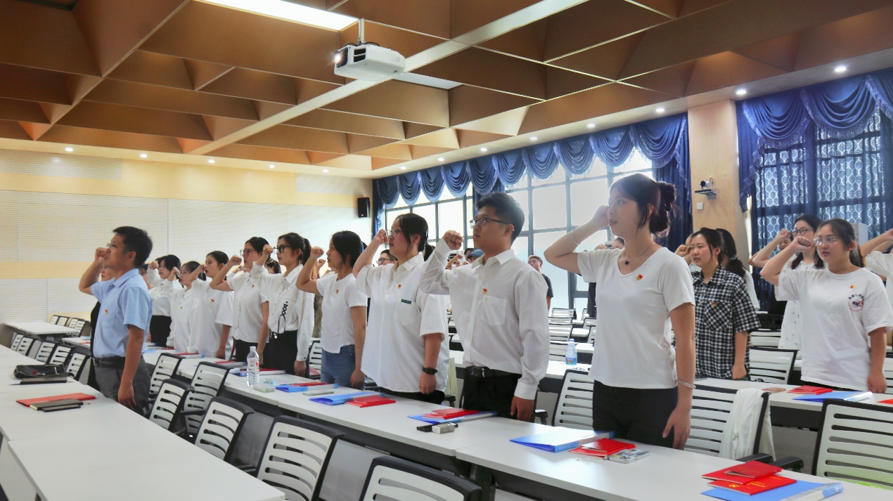 活动现场奏唱国歌,举行2024年新接收预备党员宣誓仪式,党委副书记孙彦波宣读院党委《批复》,并为新接收的预备党员佩戴党员徽章,学生党支部书记席耶为新接收预备党员颁发《中国共产党章程》(单行本)和《入党通知书》、《党员手册》。新接收预备党员面向党旗庄严宣誓,老党员重温入党誓词,新接收预备党员朗诵廉洁名篇《爱莲说》、《陋室铭》。