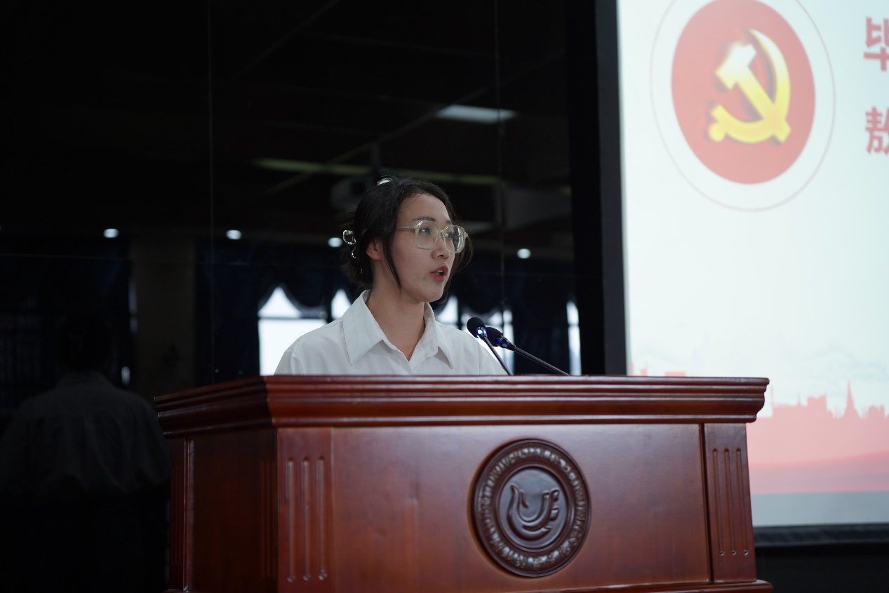 随后,毕业生党员代表进行赠言交流。即将就职于武汉市江夏区融媒体中心的毕业生党员敖珺怡表示,要始终坚持党性原则,站稳政治立场,严守党的纪律,积极宣传党的路线方针政策,坚持正确舆论导向,努力为党的新闻事业贡献力量。即将就职于共青团通山县委员会的毕业生党员王征霄表示,将自觉绷紧纪律之弦,筑牢自律之堤,忠诚履职践责,在未来工作中充分运用接受党组织培养锻炼所学所获,着眼强化团组织政治功能和组织功能,不断提升共青团的组织力、吸引力、凝聚力,把广大基层青年团员紧密团结在以习近平同志为核心的党中央的周围,更好发挥党的助手和后备军作用。