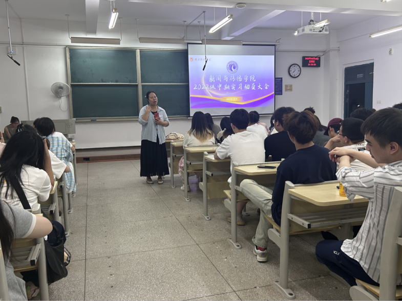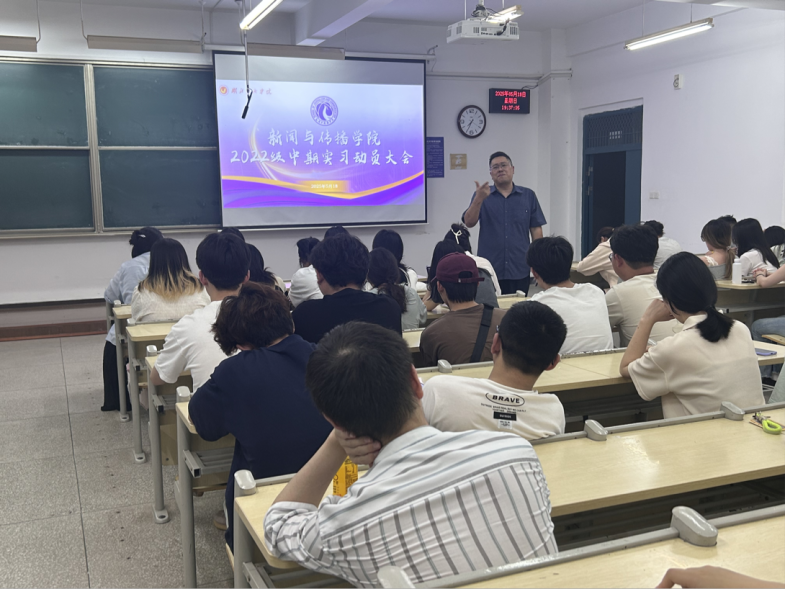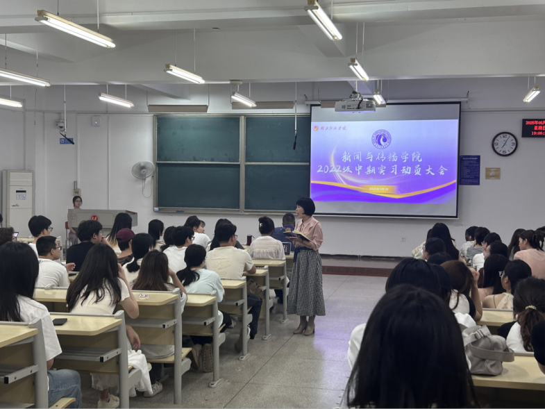 5月18日,太阳集团tyc33455组织召开2022级本科生中期实习动员会。学院副院长陈奕、新闻系主任夏兴通、新媒体系主任夏青出席动员会,辅导员周岚主持会议,全体2022级本科生参会。