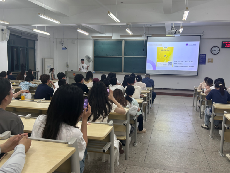 动员会设置朋辈教育环节,新媒体2241班刘昊政同学结合主流媒体实习经历,从行业趋势研判、岗位适配分析、求职材料标准化制作技巧等方面作经验分享,为同学们提供可操作的实践参照系。