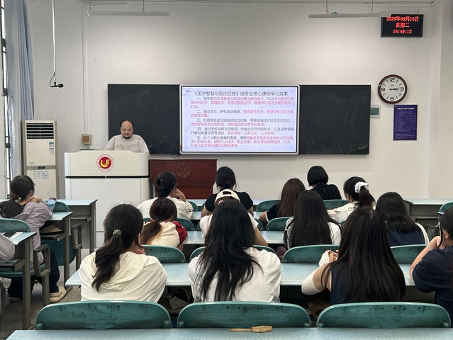 最后,曾浪老师围绕微专业和国学班进行了宣讲。他介绍了微专业聚焦的前沿领域与独特课程设置,帮助学生拓宽专业视野,提升跨学科能力;同时阐述了国学班对传承和弘扬中华优秀传统文化的重要意义,鼓励同学们汲取传统文化精髓,为新闻传播行业注入深厚文化内涵。