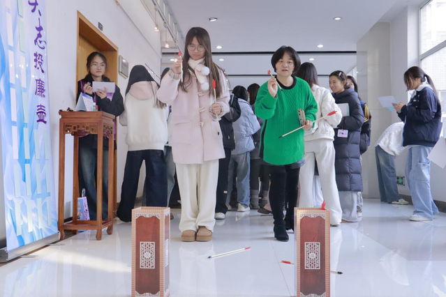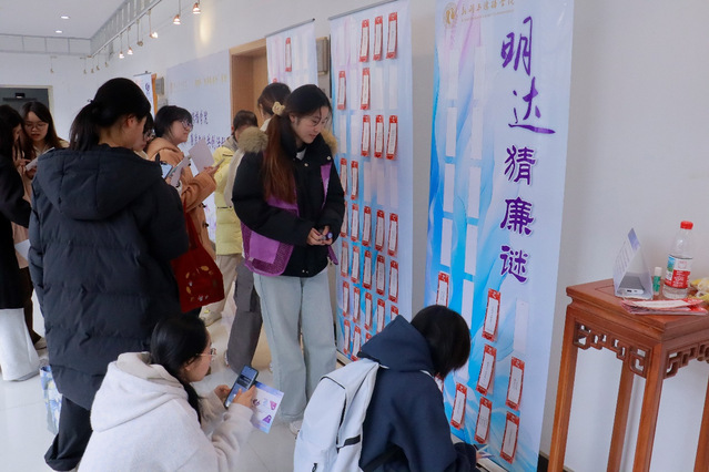 活动充分发挥人文学科鲜明特色,聚焦提升师生廉洁素养,将廉洁教育与传统文化猜谜、投壶、箴言、箔画等多种形式有机融合,通过明达猜廉谜、矢志投廉壶、约己书廉言、匠心绘廉画4个主题版块活动,将廉洁理念寓于问答书画、体验互动间。