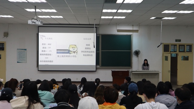 考取华师新传学硕的陈沐恩,初试取得了403分的好成绩。她从院校选择、复习规划、心态管理三个方面分享了复习经验,一是院校选择要以地域、报录比、学校专业排名、专业课科目为参考;二是整个复习阶段要找到自己的方向,合理规划复习时间;三是考研期间的心态管理很重要,可以找一个相互鼓励、互通信息的研友,同时尽量保证复习期间心态的平和与愉悦。