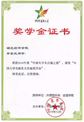 能做会做的她,在校期间获得2018年湖北大学生新闻传播教育创新实践技能大赛播音主持类一等奖、湖北省高校“寻找最美之声”朗读大赛三等奖、大广赛省级三等奖及优秀奖、湖北省“大学生自强之星”、“中国大学生自强之星”奖学金等奖项。