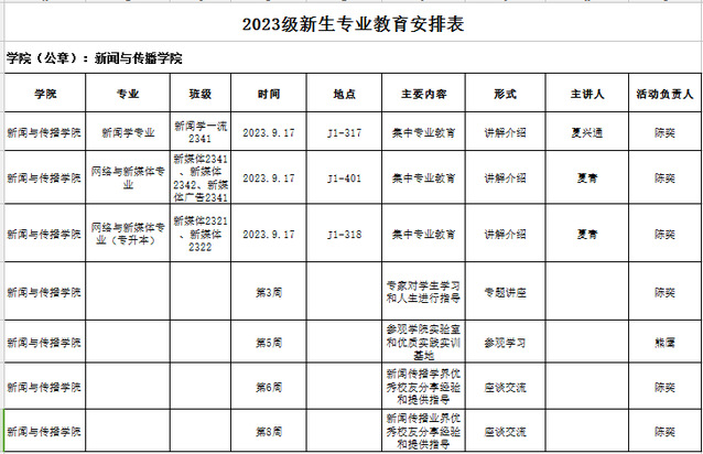 4.其他形式:拟安排学院各专业骨干教师带领学生参观学院实验室和优质实践实训基地,让新生实地体验新闻传播活动,掌握业界最新资讯,激发学习热情。