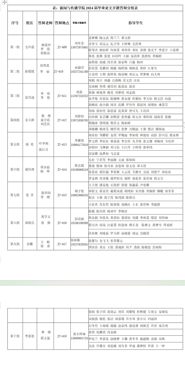 每个答辩小组配备一名答辩秘书,具体安排见附件。