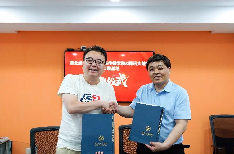 学院新闻系主任夏兴通、实验室主任毛冷蕊、新媒体系教师谈海亮,腾讯大楚网副总编辑王孝武、新闻总监戴晓颖、内容中心主任路雨晨等出席本次签约仪式。
